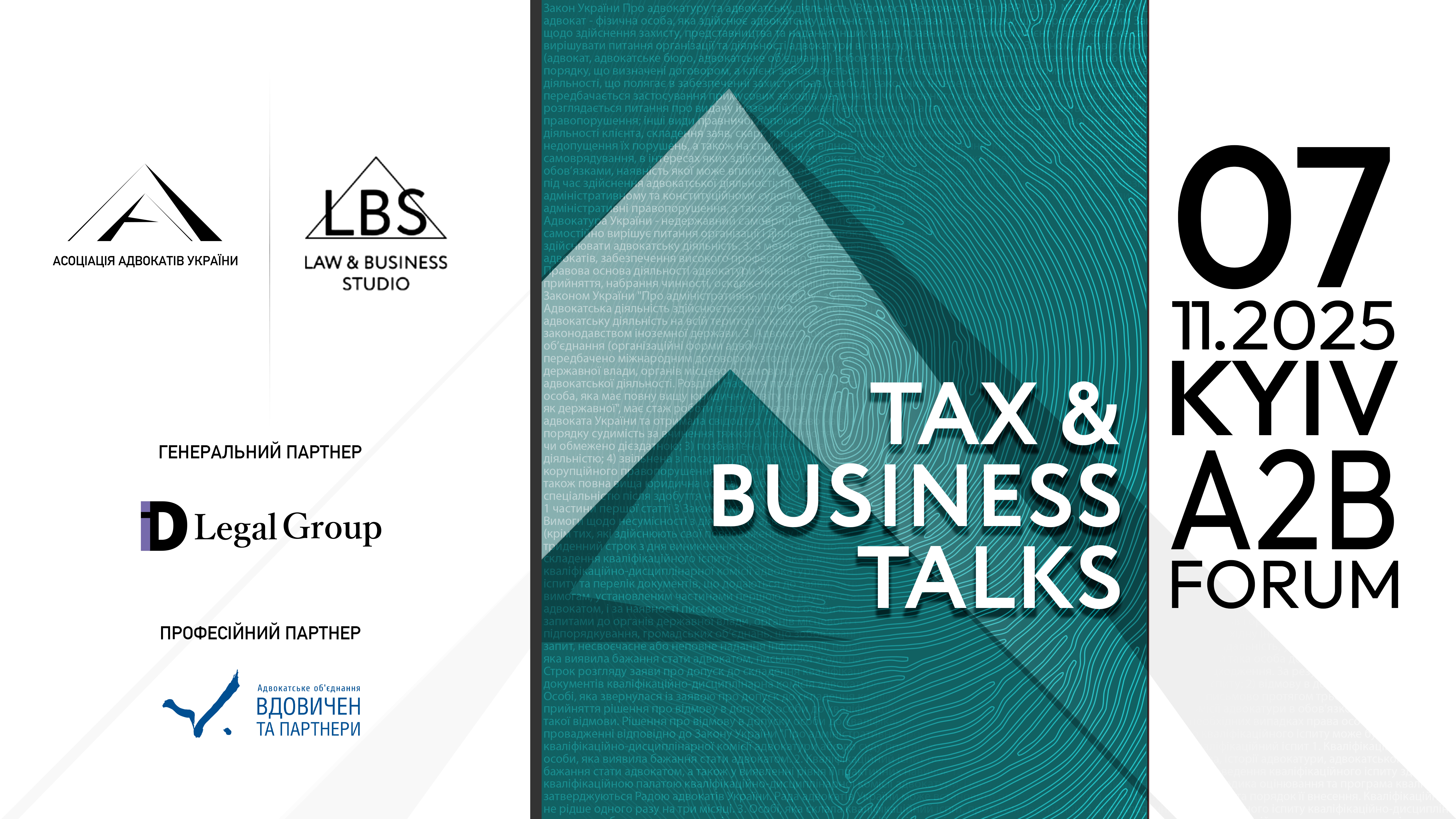 TAX & BUSINESS TALKS – 2025 A2B FORUM — це подія для тих, хто формує податкове майбутнє країни. Долучайтесь до професійної дискусії, яка задає тон для розвитку юридичного бізнесу в Україні.