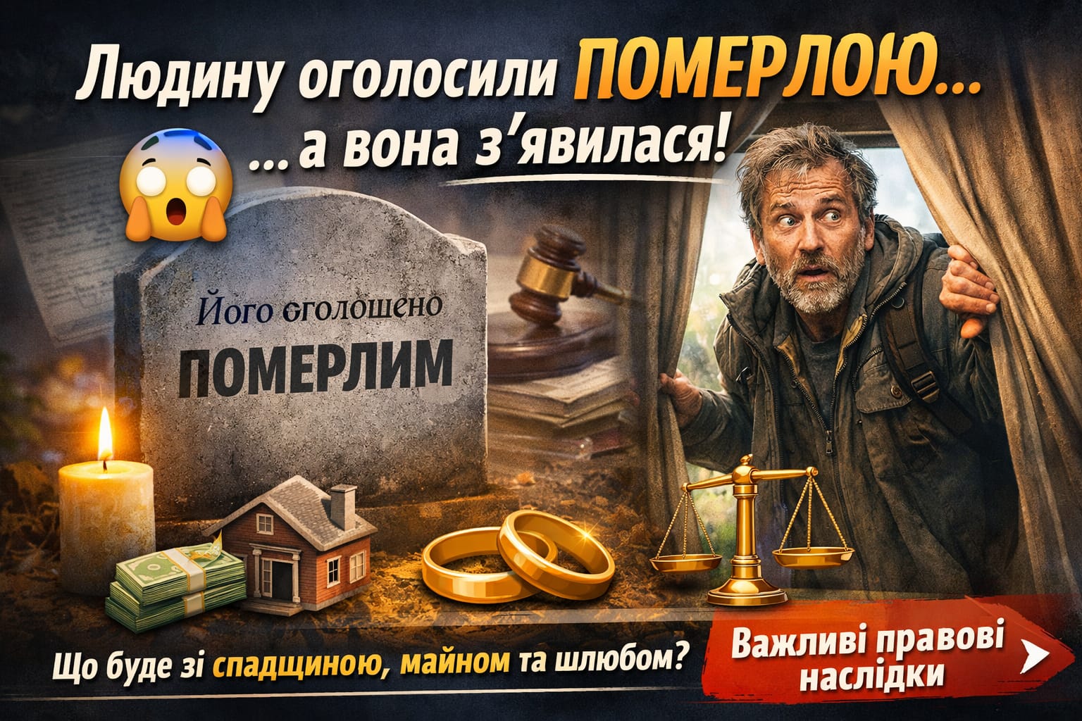 ЯКІ ПРАВОВІ НАСЛІДКИ ПОЯВИ ЛЮДИНИ, ОГОЛОШЕНОЇ ПОМЕРЛОЮ?