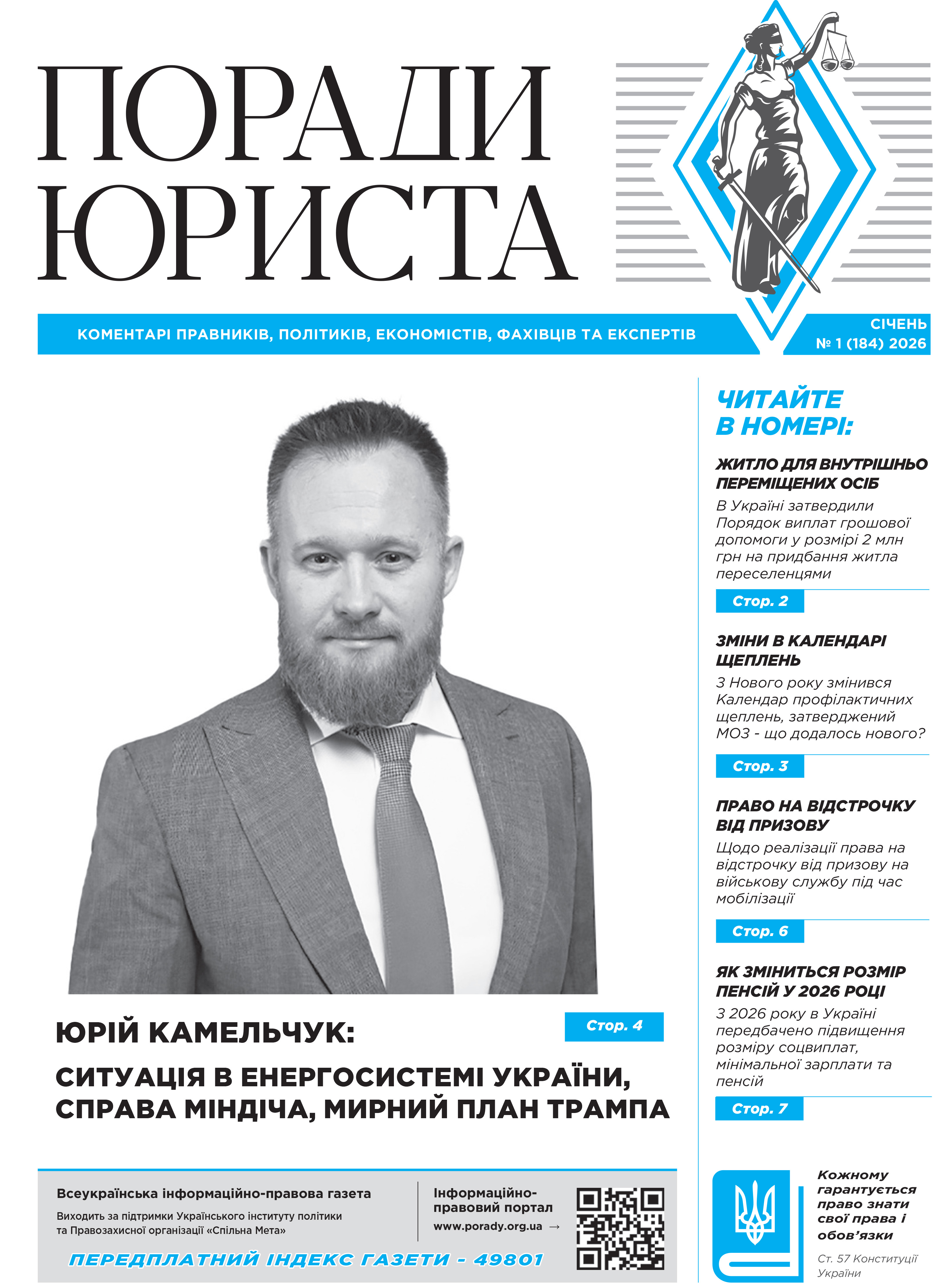 Всеукраїнська інформаційно-правова газета "ПОРАДИ ЮРИСТА" № 1 (184) 2026