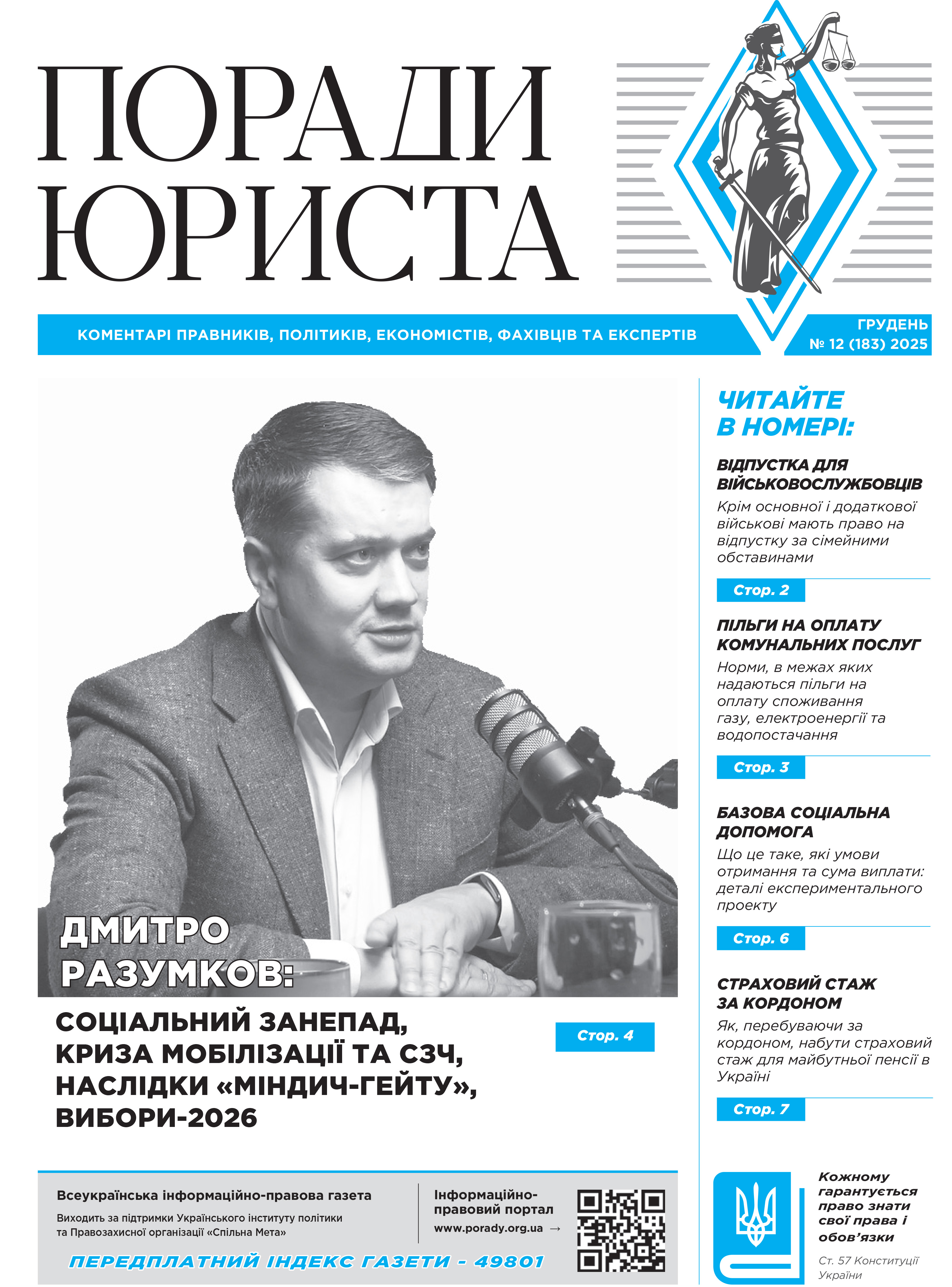 Всеукраїнська інформаційно-правова газета "ПОРАДИ ЮРИСТА" № 12 (183) 2025