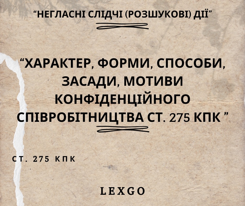 НСРД: Характер, форми, способи, засади, мотиви конфіденційного співробітництва (ст. 275 КПК)