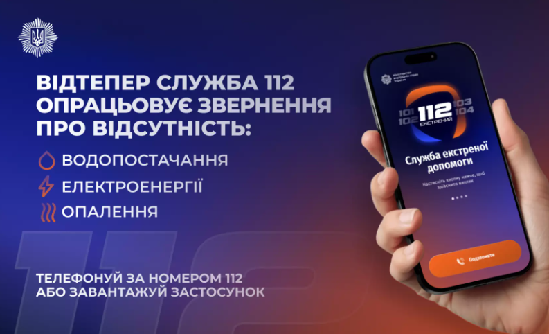 Лінія 112 працює в режимі прийому повідомлень про відсутність тепло-, водо- та електропостачання.