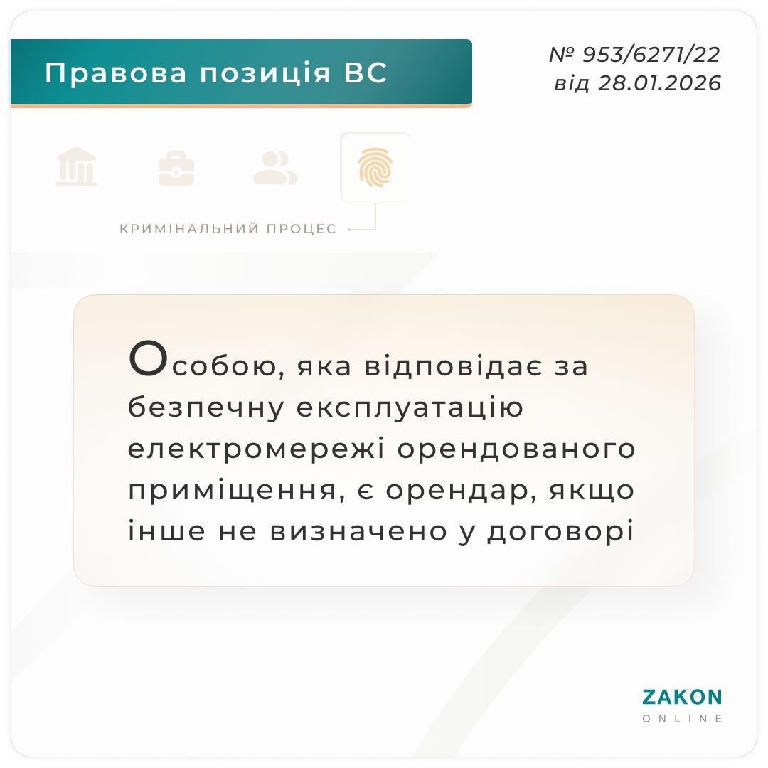 У касаційній скарзі захисник стверджував, що висновки суду про те, що обвинувачений відповідає за безпечну експлуатацію лінії освітлення цеху орендованого ним приміщення не є правильними, оскільки він не є особою, яка відповідає за безпечну експлуатацію електромережі приміщення, яка належить орендодавцю.