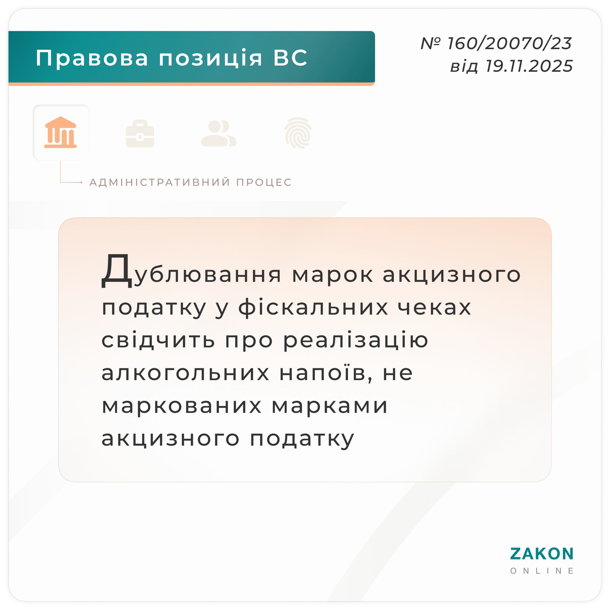 КАС ВС надав ствердну відповідь на це питання вказавши, що за положеннями чинного законодавства кожна марка акцизного податку на алкогольні напої повинна мати окремий номер, місяць і рік випуску марки та позначення про суму сплаченого акцизного податку за одиницю маркованої продукції, що свідчить про те, що кожна окрема марка є індивідуальною до кожної одиниці відповідного товару.