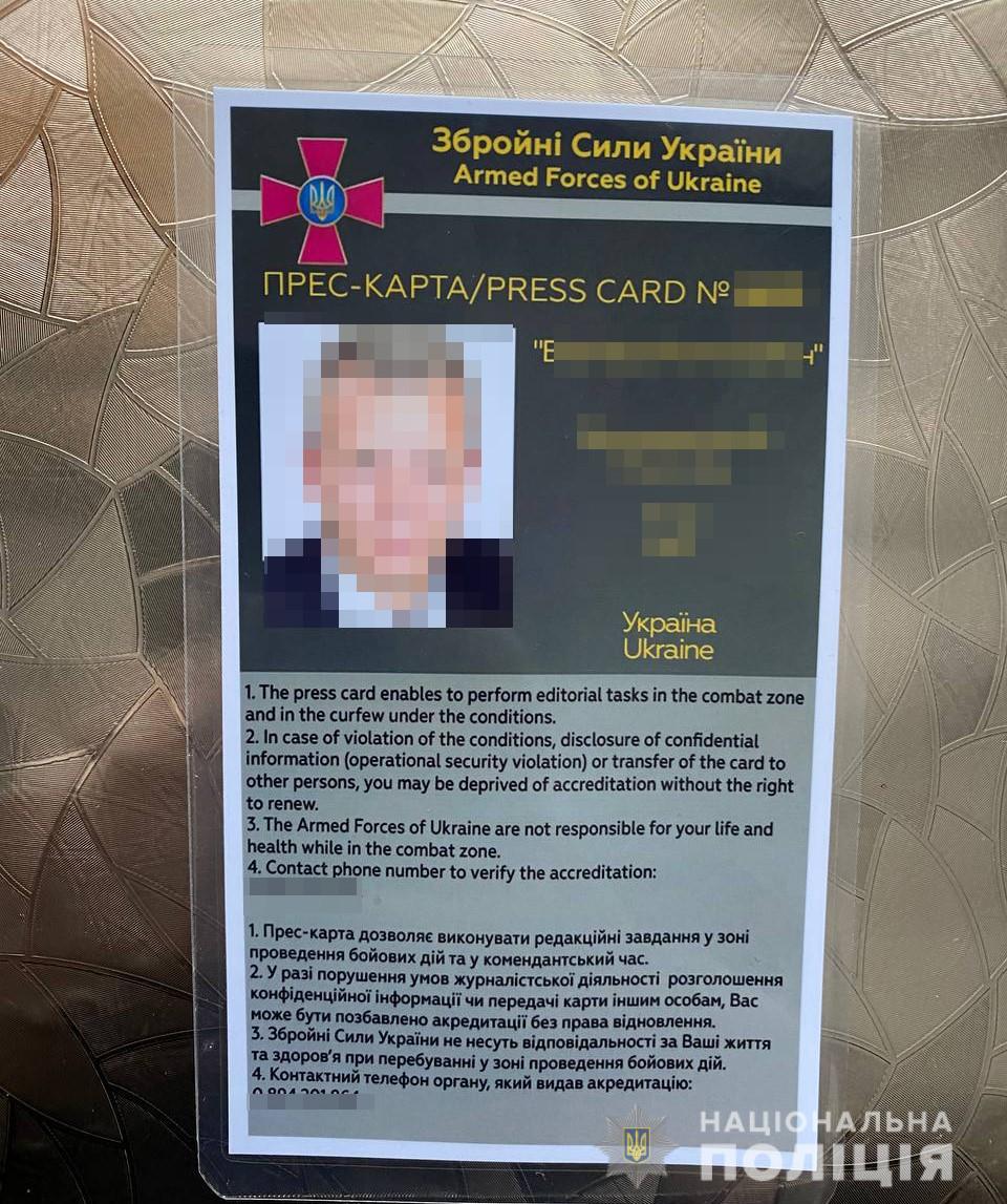 Столична поліція затримала чоловіка, який продавав фейкові посвідчення журналіста через власний веб-сайт. Послугою міг скористатися будь-хто, адже фігурант не здійснював перевірки наданих даних для оформлення таких посвідчень.