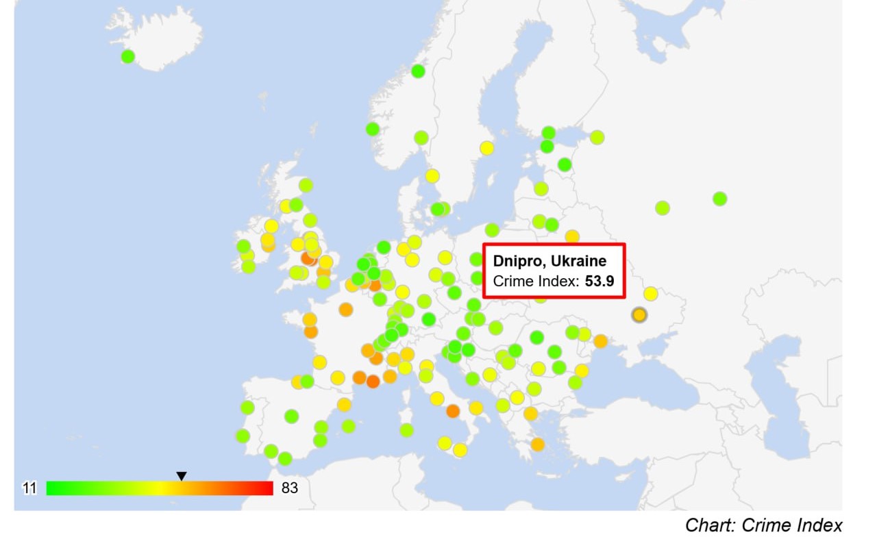 Українські міста Одеса і Дніпро потрапили до списку 20 найнебезпечніших міст Європи, зайнявши 17-те і 20-те місця.