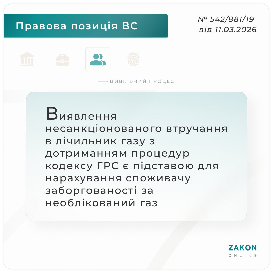 Відтак, оператор ГРМ після виявлення втручання в ЗВТ / лічильник газу та дотримання передбачених Кодексом ГРС процедур має право нарахувати споживачу заборгованість за необлікований газ за відповідний період. Викривлення даних обліку газу внаслідок несанкціонованого втручання є підставою для такого нарахування після проведення всіх процедурних дій з його доведення.